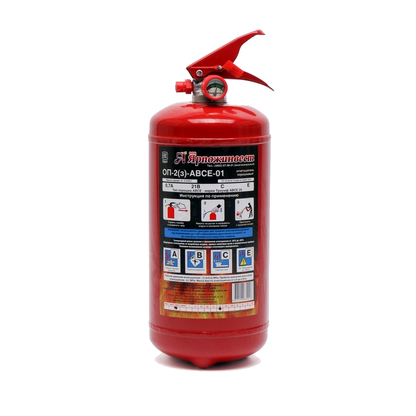 Огнетушители порошковые ОП-2 закачного типа с массой заряда 2 кг применяются для тушения твердых (класс А), жидких (класс В), газообразных веществ (класс С) и электроустановок под напряжением до 1000 В (класс Е). Их рекомендуется использовать в квартирах и офисах, промышленных объектах и т.д. Кроме того, данные огнетушители являются наиболее подходящими для использования в легковых и грузовых (если несколько штук) автомобилях.